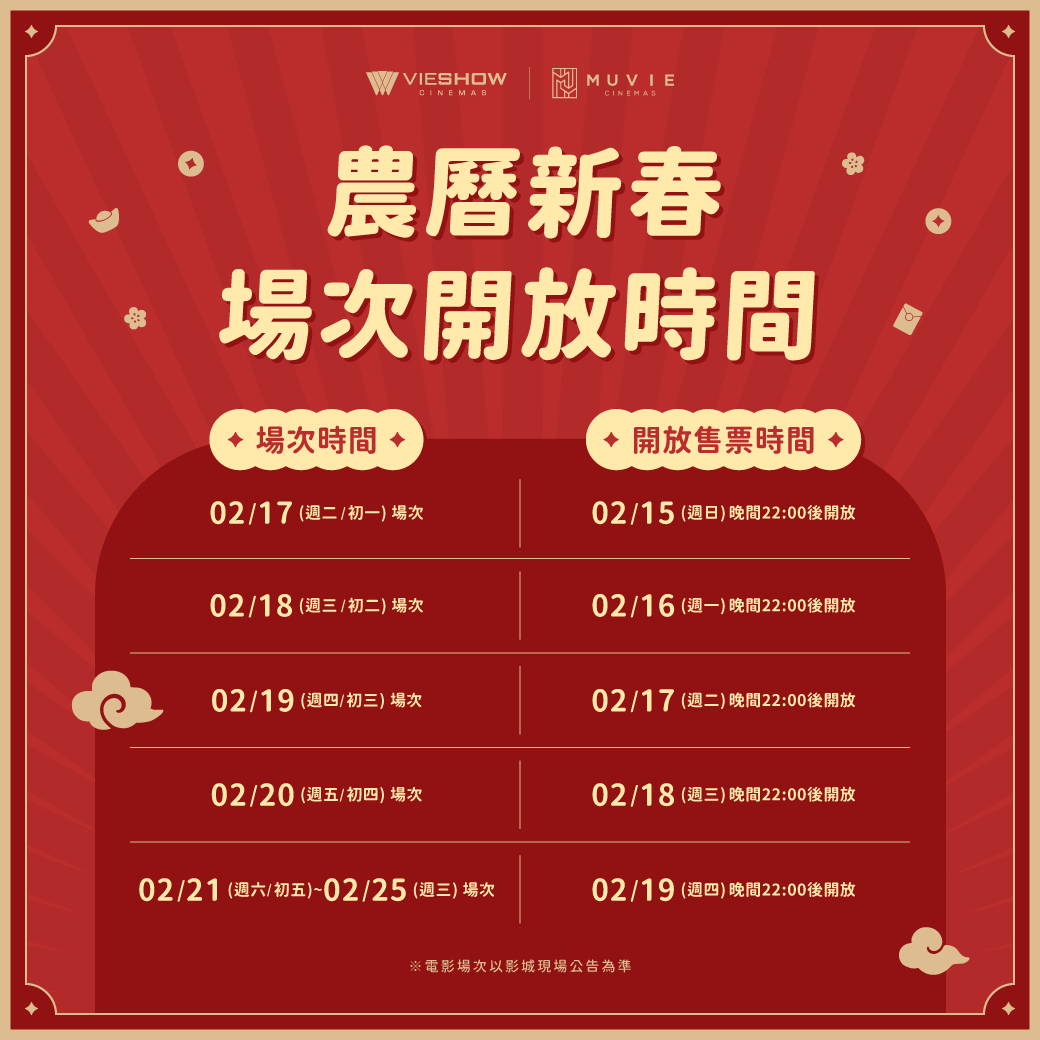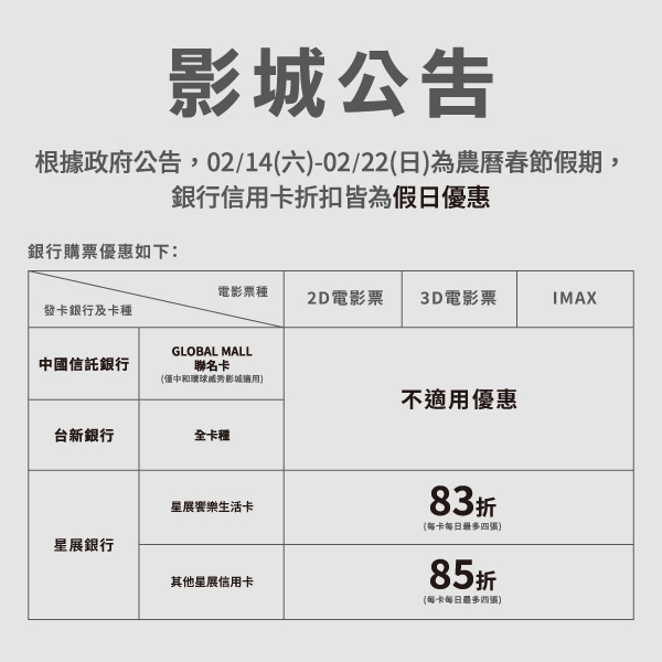 公告|新春電影場次售票時間&銀行優惠
