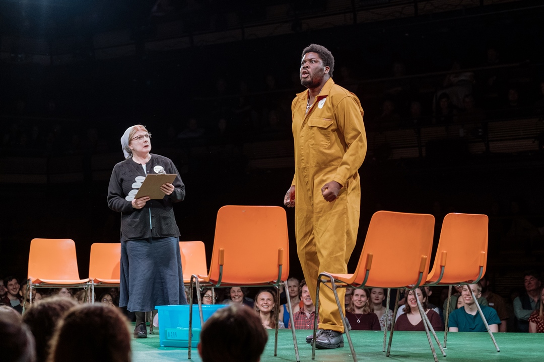 Shakespeare’s most famous romantic comedy was filmed live at the Bridge Theatre in London.. Gwendoline Christie (Game of Thrones), Oliver Chris (Green Wing, NT Live: Young Marx), David Moorst (NT Live: Allelujah!) and Hammed Animashaun (The Barber Shop Chronicles) lead the cast as Titania, Oberon, Puck and Bottom.