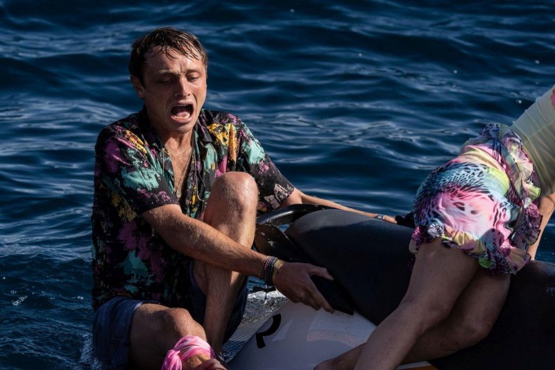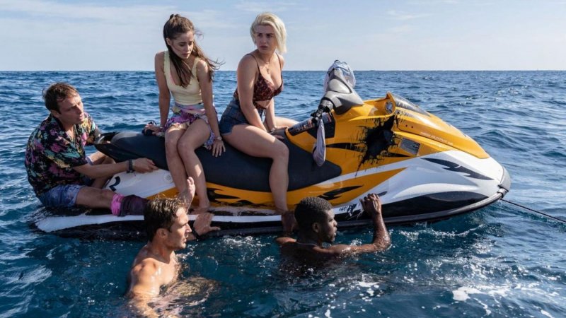一群年輕人到墨西哥海邊渡假,開心地在沙灘上喝酒狂歡,甚至還順手從岸邊偷了兩艘水上摩托車出海玩樂,卻因為玩過頭而意外相撞,導致一台沉入海中,另一台則故障無法發動,還因此讓一名友人身負重傷、命在旦夕。受困在海中央的五人,還來不及思考該如何返回陸地,就驚覺身旁竟有虎視眈眈的嗜血狂鯊,孤立無援的他們驚慌失措卻又無處可逃,僅靠著一台破損的海上摩托車,究竟該如何脫困?誰又能逃出生天?