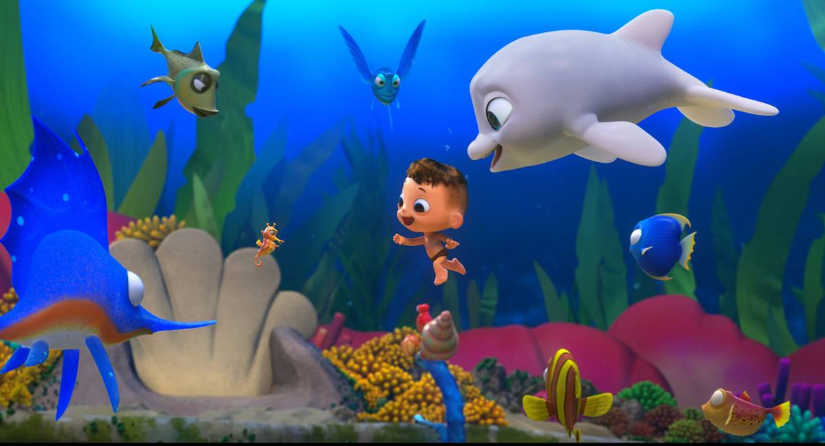 某天小海豚雪球又偷溜進深海禁區玩耍,但這次不同的是他意外撿到了“一隻”人類小北鼻,雪球興奮地問媽咪能不能養他,海豚媽媽將男孩視如己出,從此以後小男孩成了雪球最親愛的弟弟。他們一起生活、一起冒險、一起闖禍,整個海底世界通通都是他們的遊樂場。